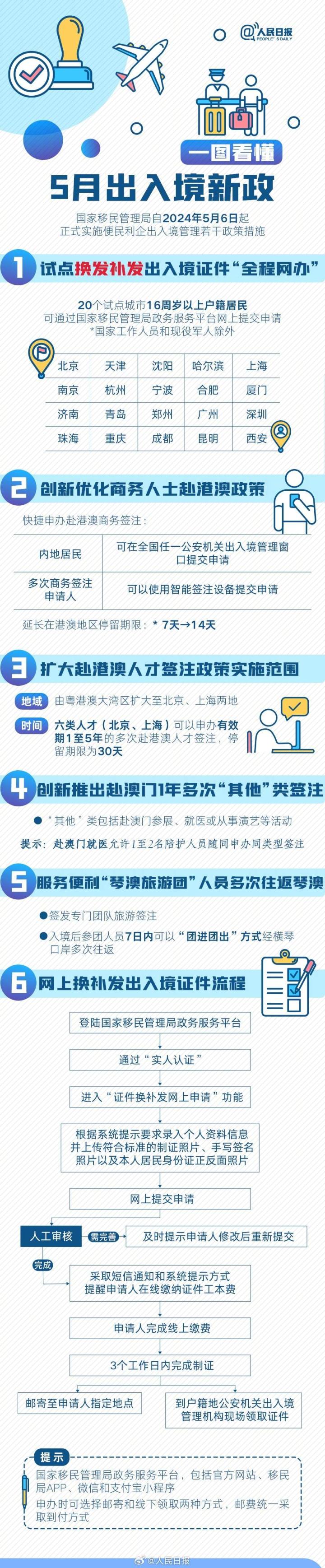 2024年5月6日起开云(中国)真人有限公司,我国将实行收支境处治的新战略步调。换补发收支境证件“全程网办”,哪些城市被纳入试点?商务签注捏有东说念主最多在港澳地区停留几天?1年屡次赴澳门可办理哪类签注?网上换补发收支境证件进程来了!戳图了解↓↓↓