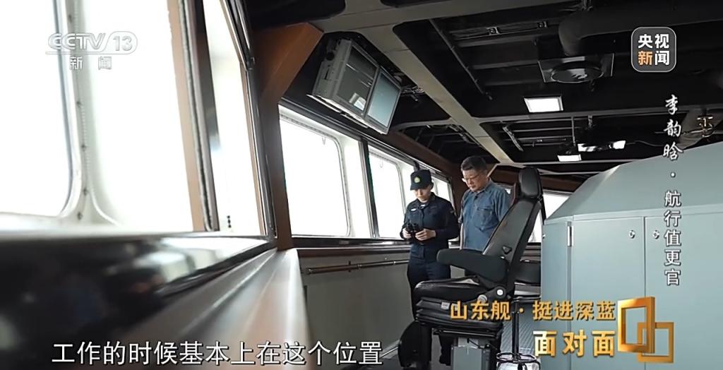 舟师山东舰 李韵晗:服务的时候基本上在这个位置,诚然也不一定全时是坐着的,也有可能是站着的,因为你有的时候远眺视线畛域很大,你可能要走到那儿,或者是走到这边。这个驾驶室任何的一个部位,王人有可能是我们服务的处所。