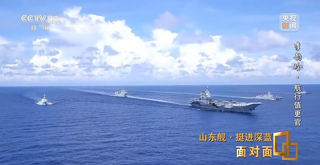舟师山东舰 李韵晗:基本上我们一出我们通例的行为区域,这些强度一下就上来了。外舰、外机的追踪监视强度是空前之大的。比如说每天的架次数不断地在增多,不断地在刷新,随着我们越来越往外走。这种跟监烦躁寻衅的这种态势也不断升级。