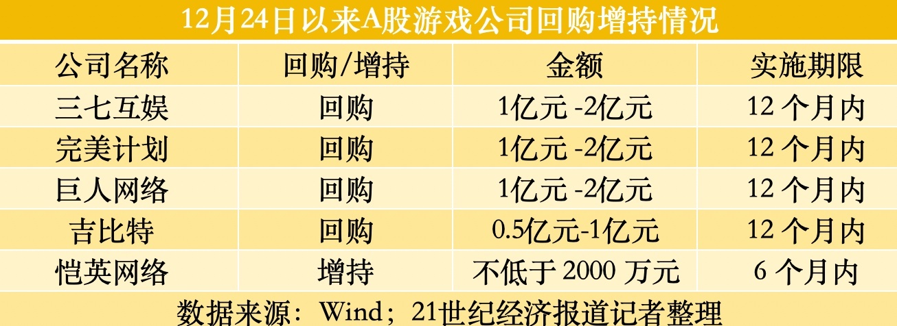 12月25日晚间,竣工寰宇、吉比特先后抛出亿元回购策动,这是自10月22日游戏股股价下滑以来,至少第4-5家大手笔增握回购的游戏类上市公司。